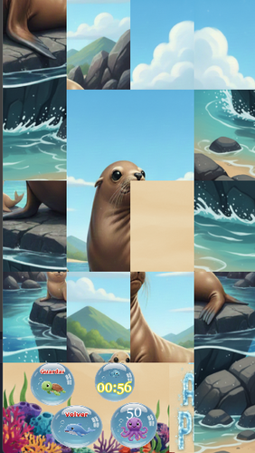 El objetivo principal de AquaPuzzle es completar todos los rompecabezas de animales disponibles. Hay dos versiones fácil de 9 piezas y difícil de 16 piezas que puedes seleccionar en el menú de ajustes.