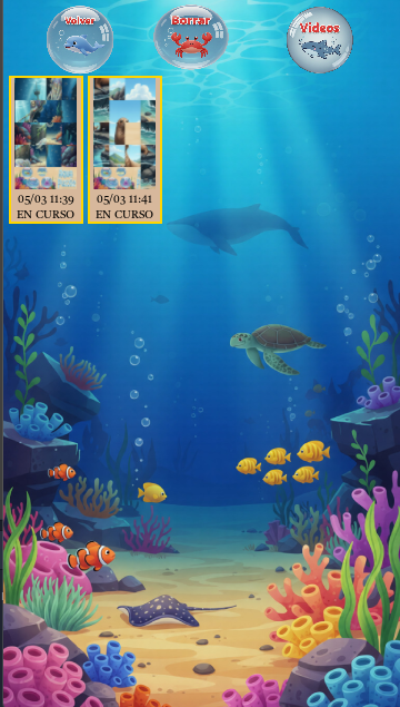 Botón Videos: Accede a la galería de videos desbloqueados.